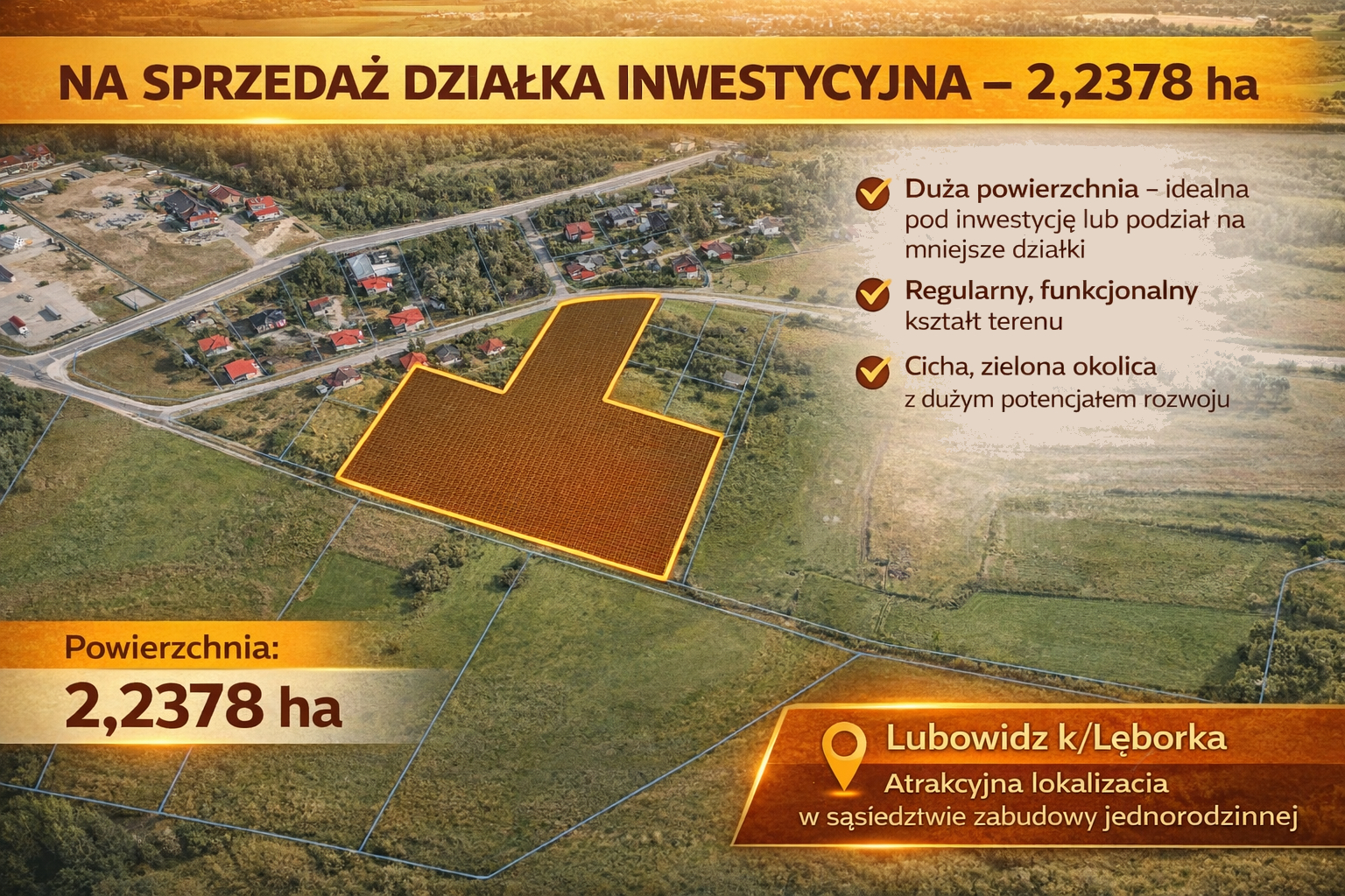 Lubowidz to kierunek, który coraz wyraźniej buduje swoją pozycję na mapie inwestycyjnej Pomorza i właśnie w tej perspektywicznej lokalizacji oferujemy grunt o powierzchni 2,2678 ha, stanowiący gotową bazę pod projekt deweloperski.