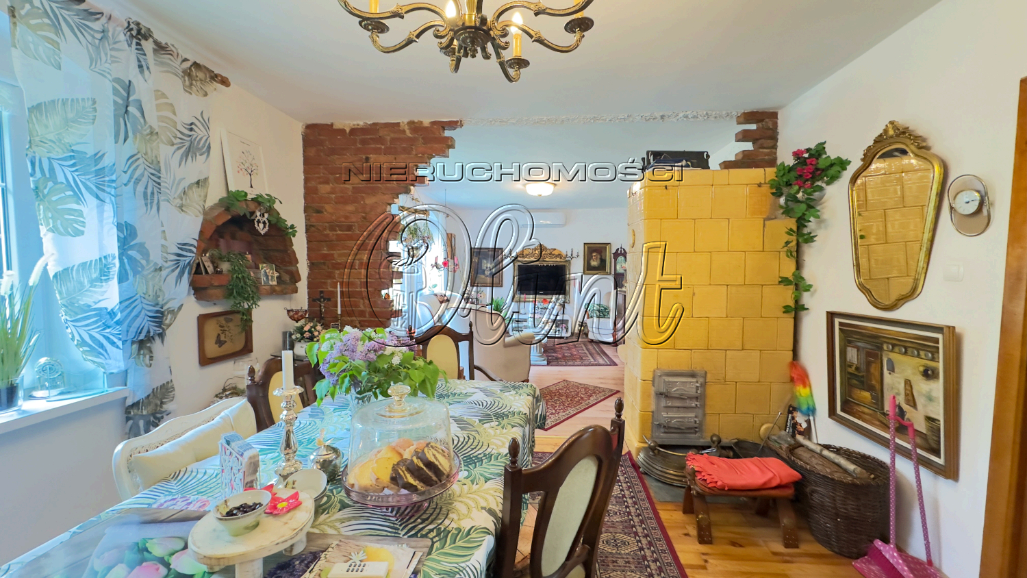 Dom z zewnątrz zachwyca swoim wyglądem - elewacją z tradycyjnej, czerwonej cegły ze stylowymi, drewnianymi okiennicami, a wewnątrz pełnią ciepła retro aranżacji, gdzie każdy detal tworzy spójną, klimatyczną całość. To aż 5 przytulnych pokoi na dwóch poziomach, z których każdy opowiada inną historię. Na każdej kondygnacji jest łazienka z wc a na parterze funkcjonalna kuchnia. Na piętrze zainstalowano nowoczesne klimatyzatory z funkcją grzania i chłodzenia, na parterze stoi majestatyczny piec kaflowy - bijące serce domu. Na dachu - fotowoltaika i panel solarny, które realnie obniżają koszty utrzymania i wspierają środowisko.